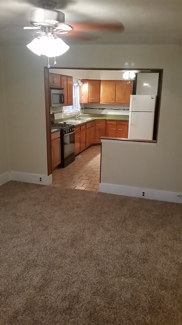 House - 3 BR 1 BA with BIG 2 car garage. New windows in 2015. Ceiling fans, stove, refrigerator, and microwave hood. Also features newly tiled shower! Eat in kitchen. Central air. 1300 sq. ft.